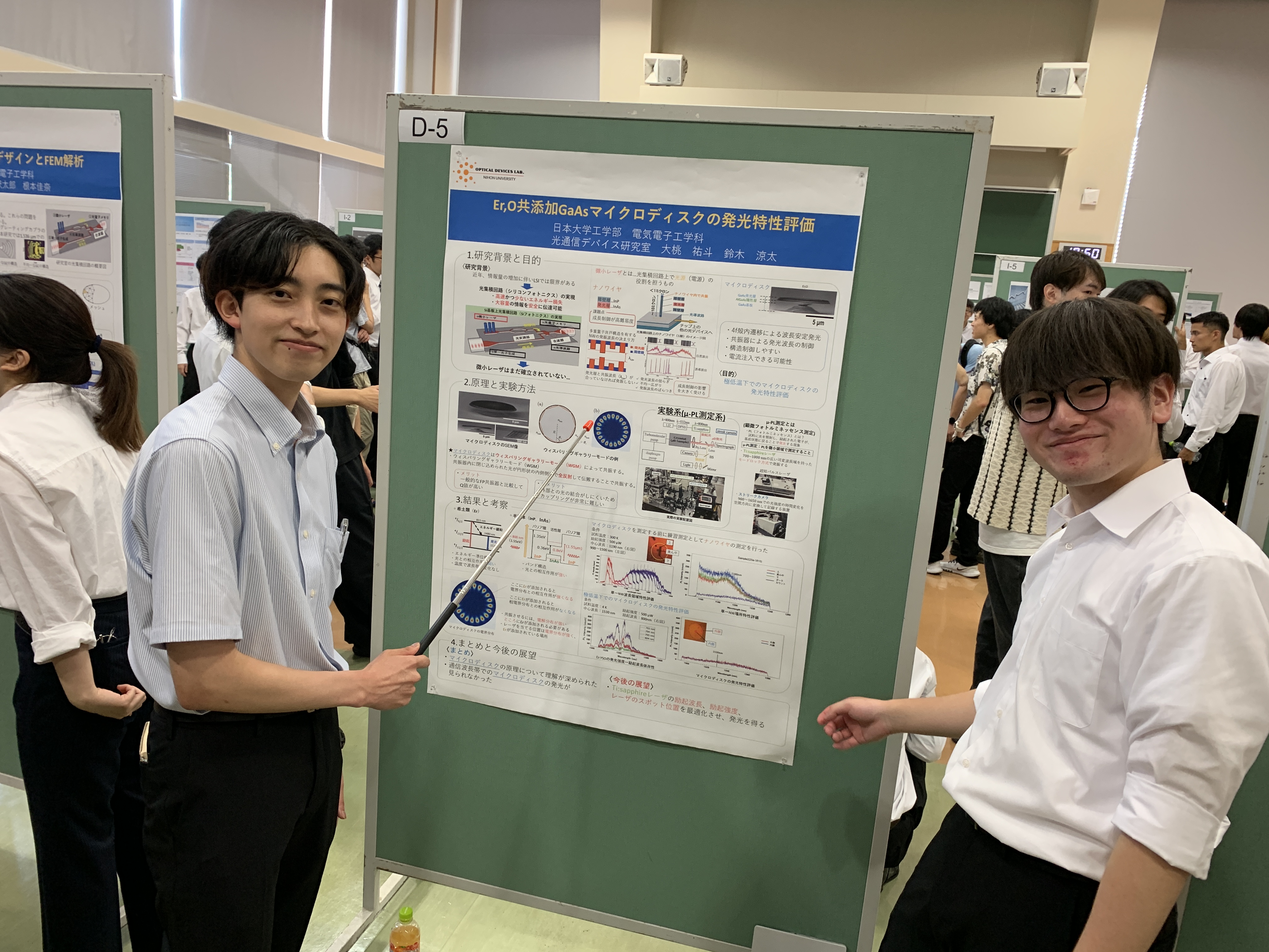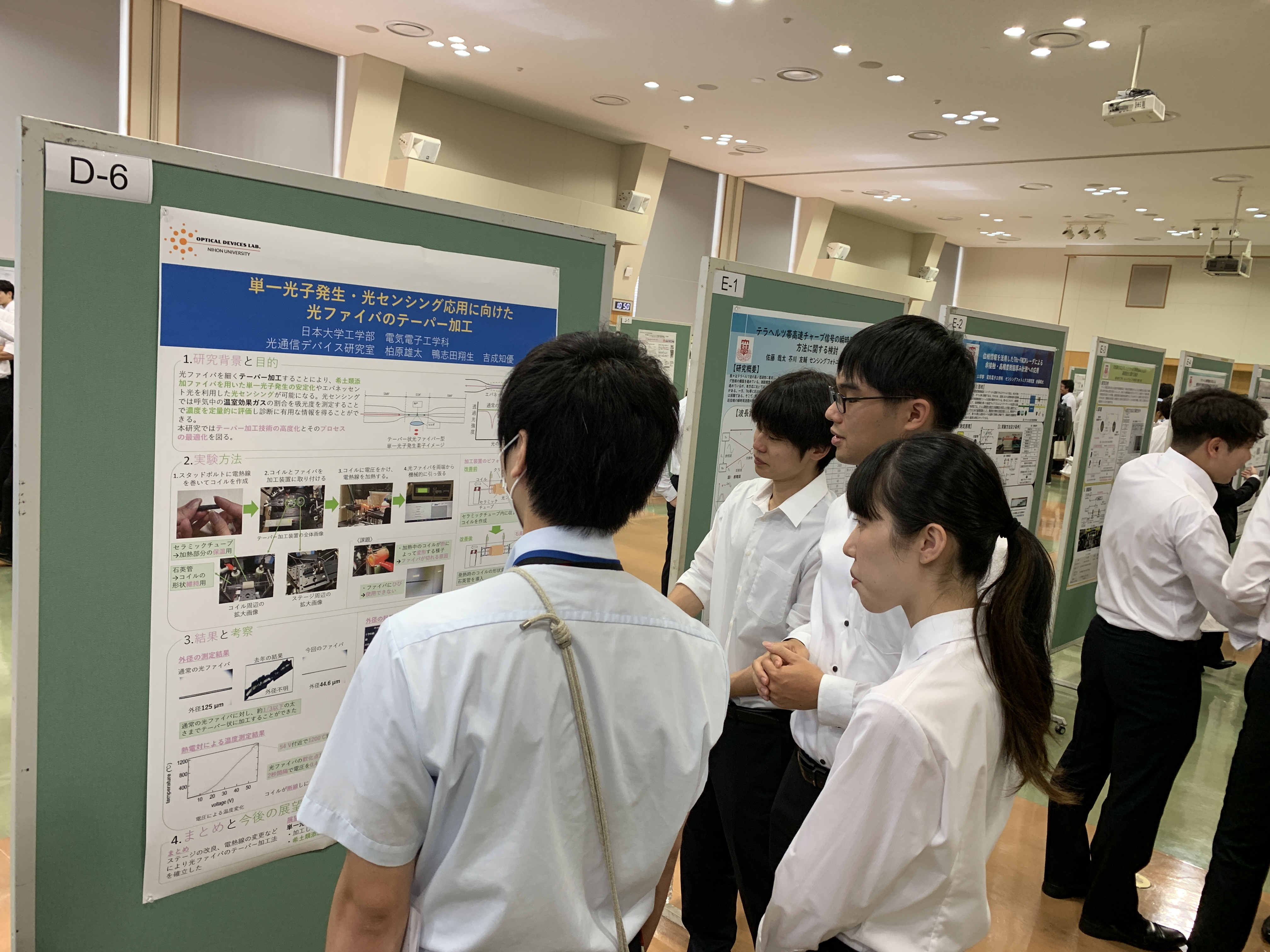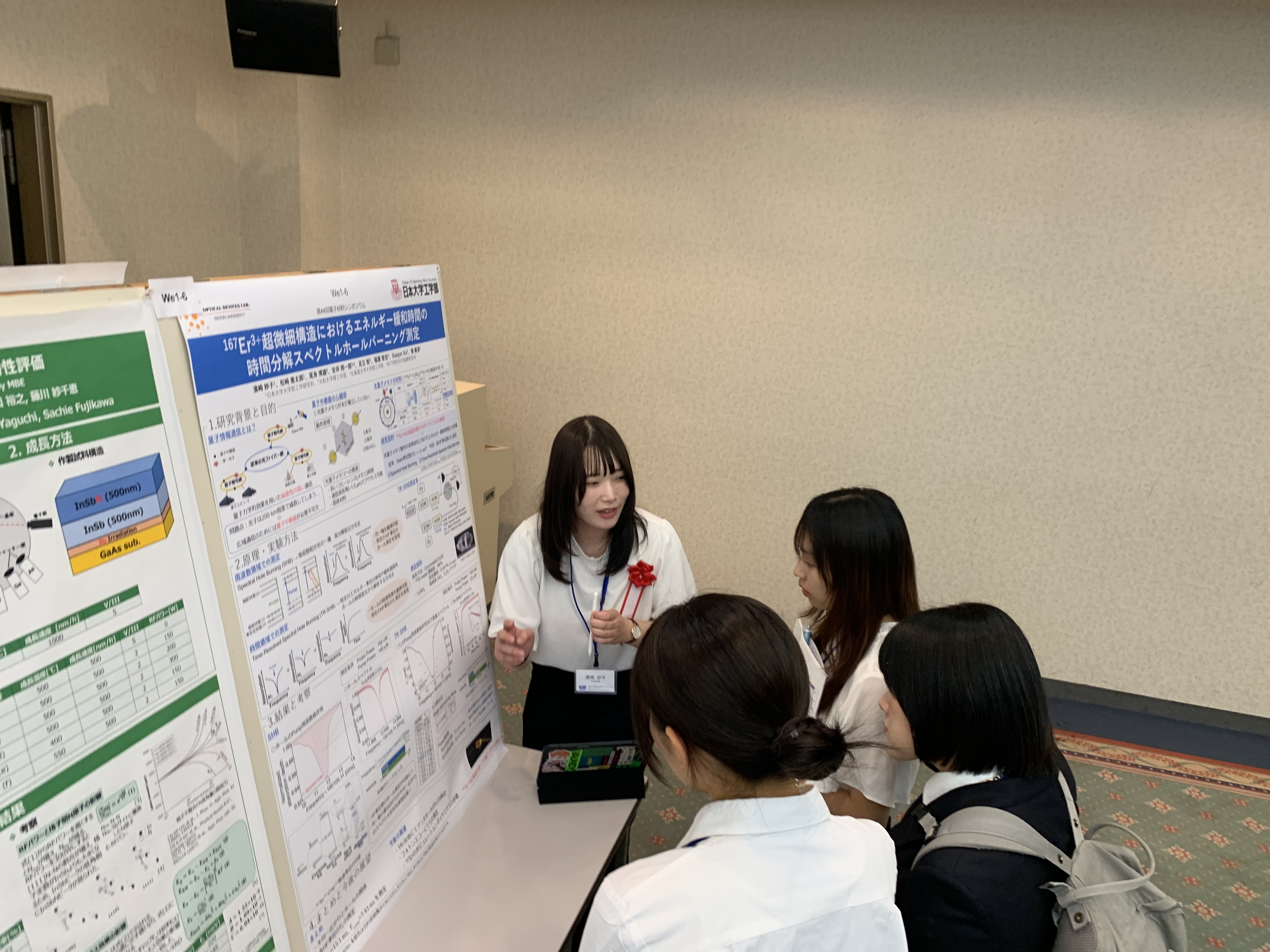 東北大学で行われた「第30回レーザー夏の学校」に本研究室のM1の二人が参加しました。 レーザーに関する研究を行う学生が主体の研究会で、学生のポスター発表だけでなく、招待講演や企業講演も行われました。 研究会を通し大学・企業の垣根を越え様々な人々と交流を深め、今後の研究に大いに役立つ経験になったようです。 研究会のHPは こちら 。