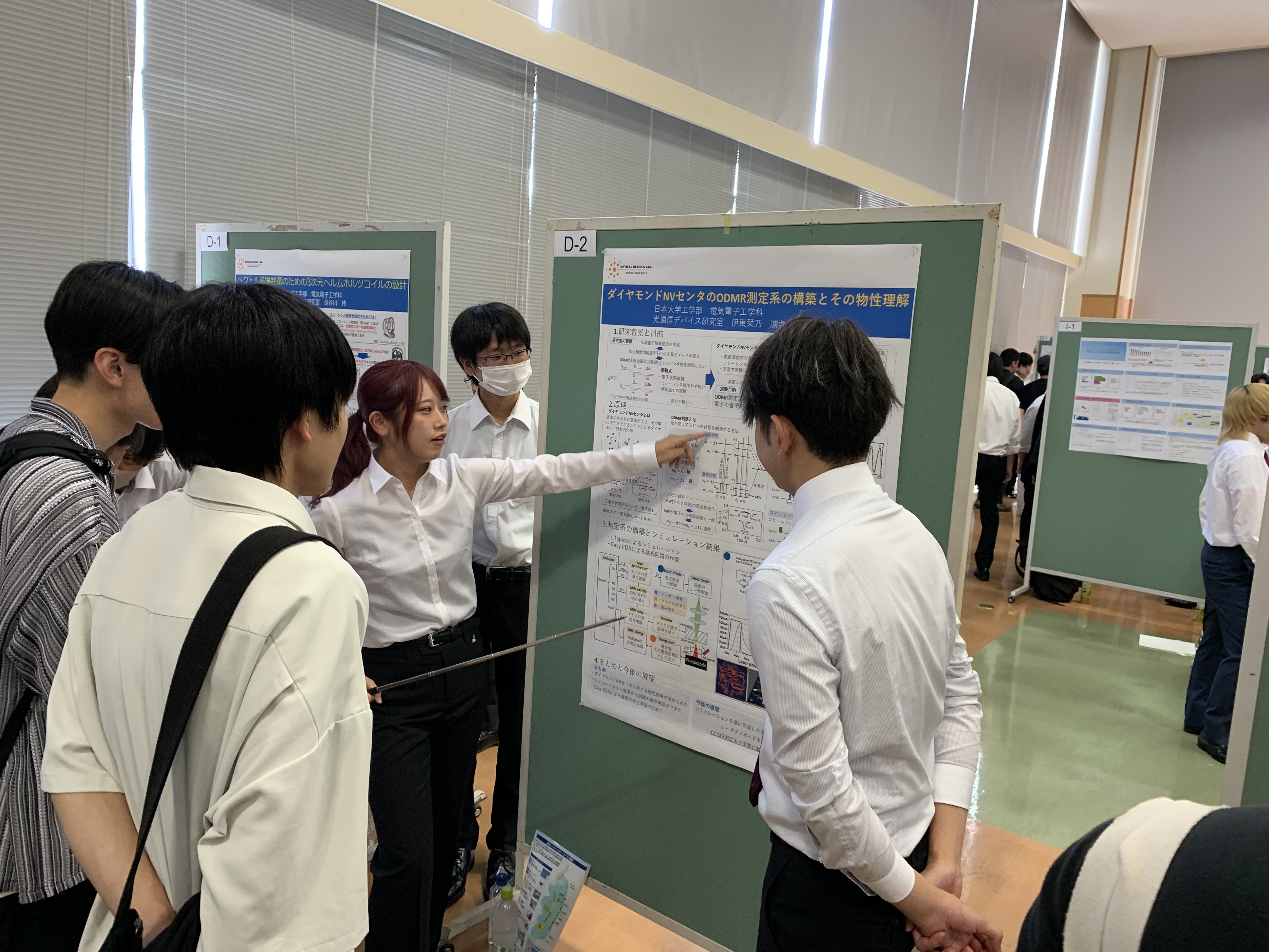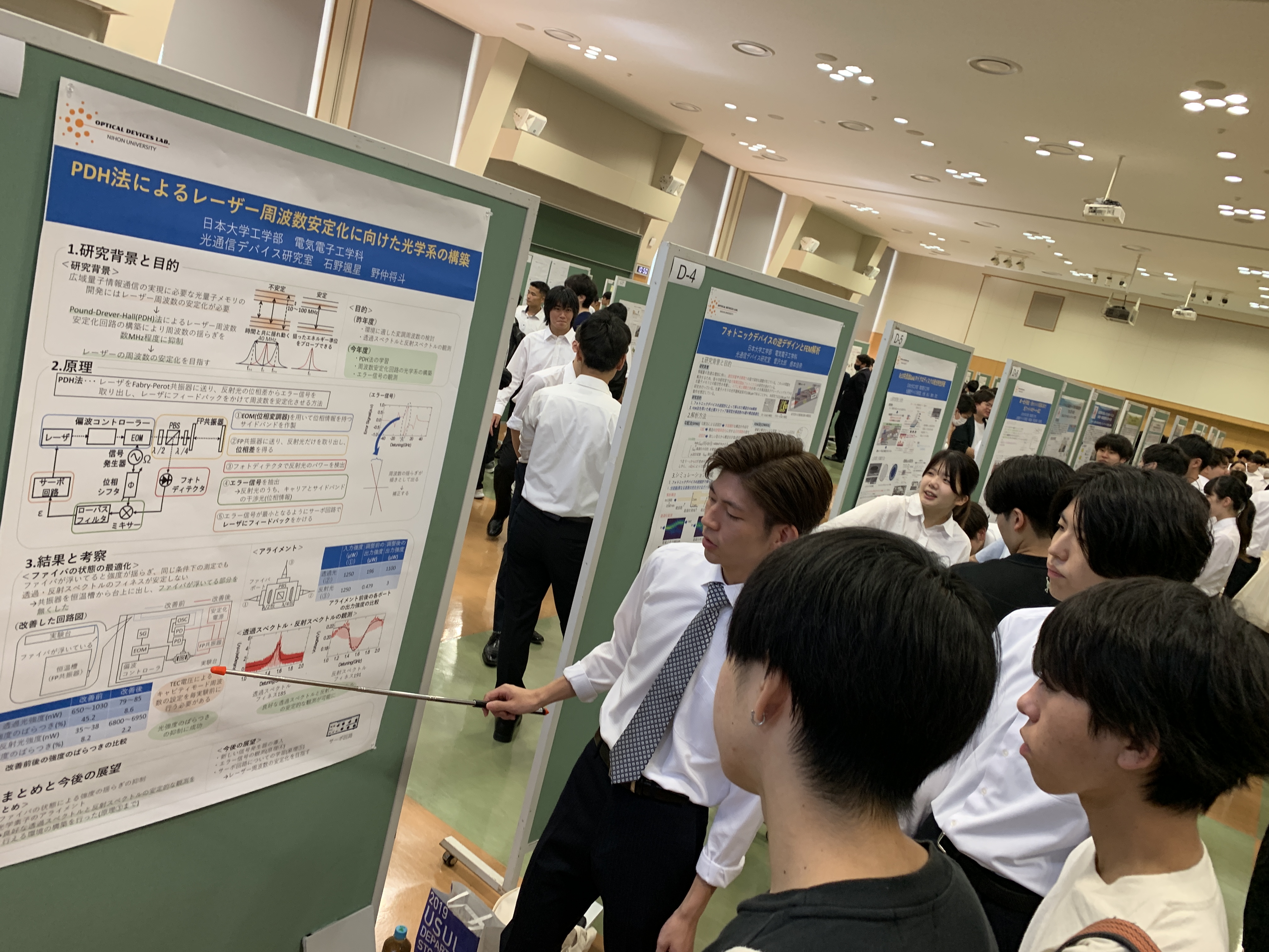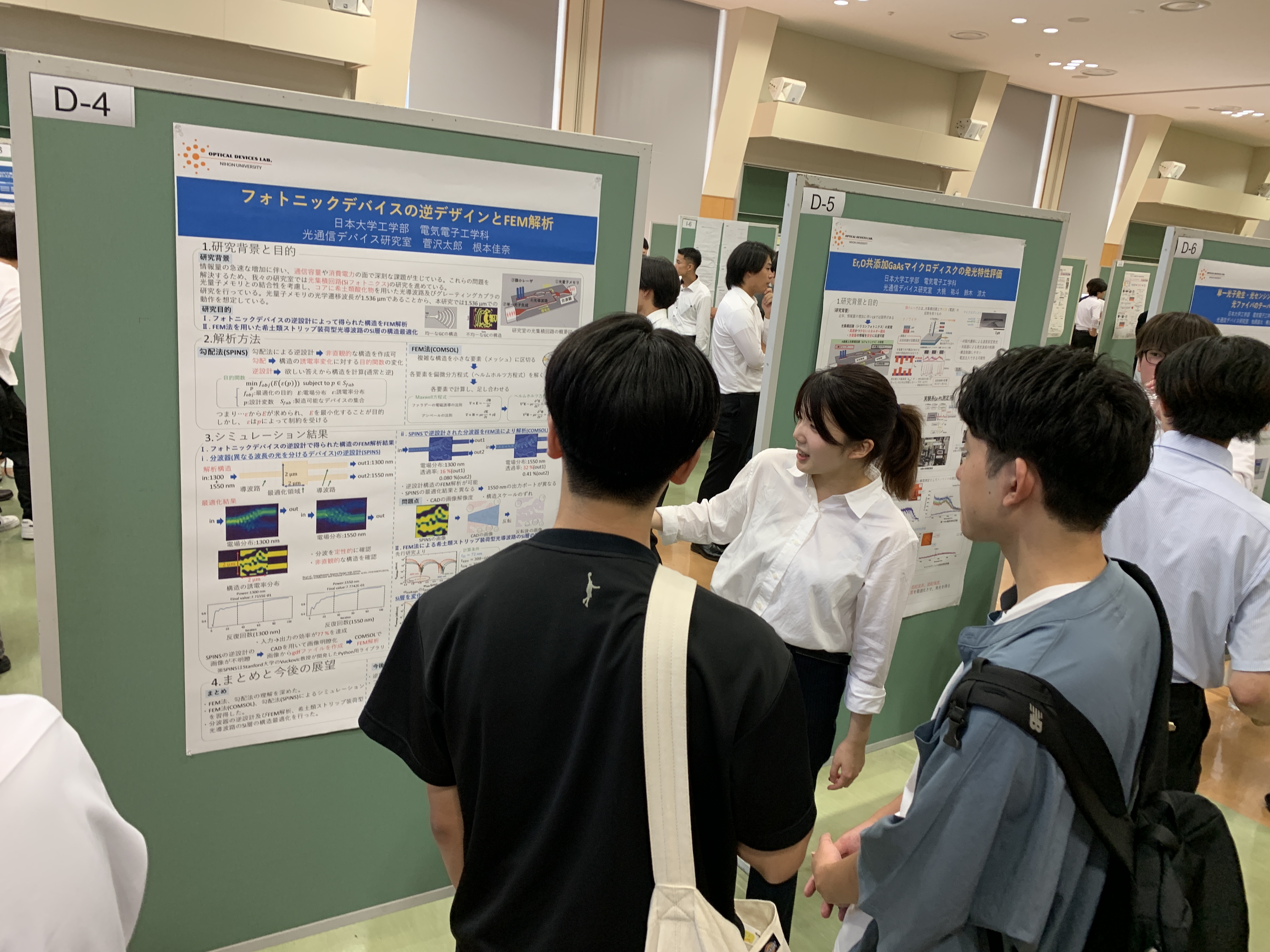 東北大学で行われた「第30回レーザー夏の学校」に本研究室のM1の二人が参加しました。 レーザーに関する研究を行う学生が主体の研究会で、学生のポスター発表だけでなく、招待講演や企業講演も行われました。 研究会を通し大学・企業の垣根を越え様々な人々と交流を深め、今後の研究に大いに役立つ経験になったようです。 研究会のHPは こちら 。