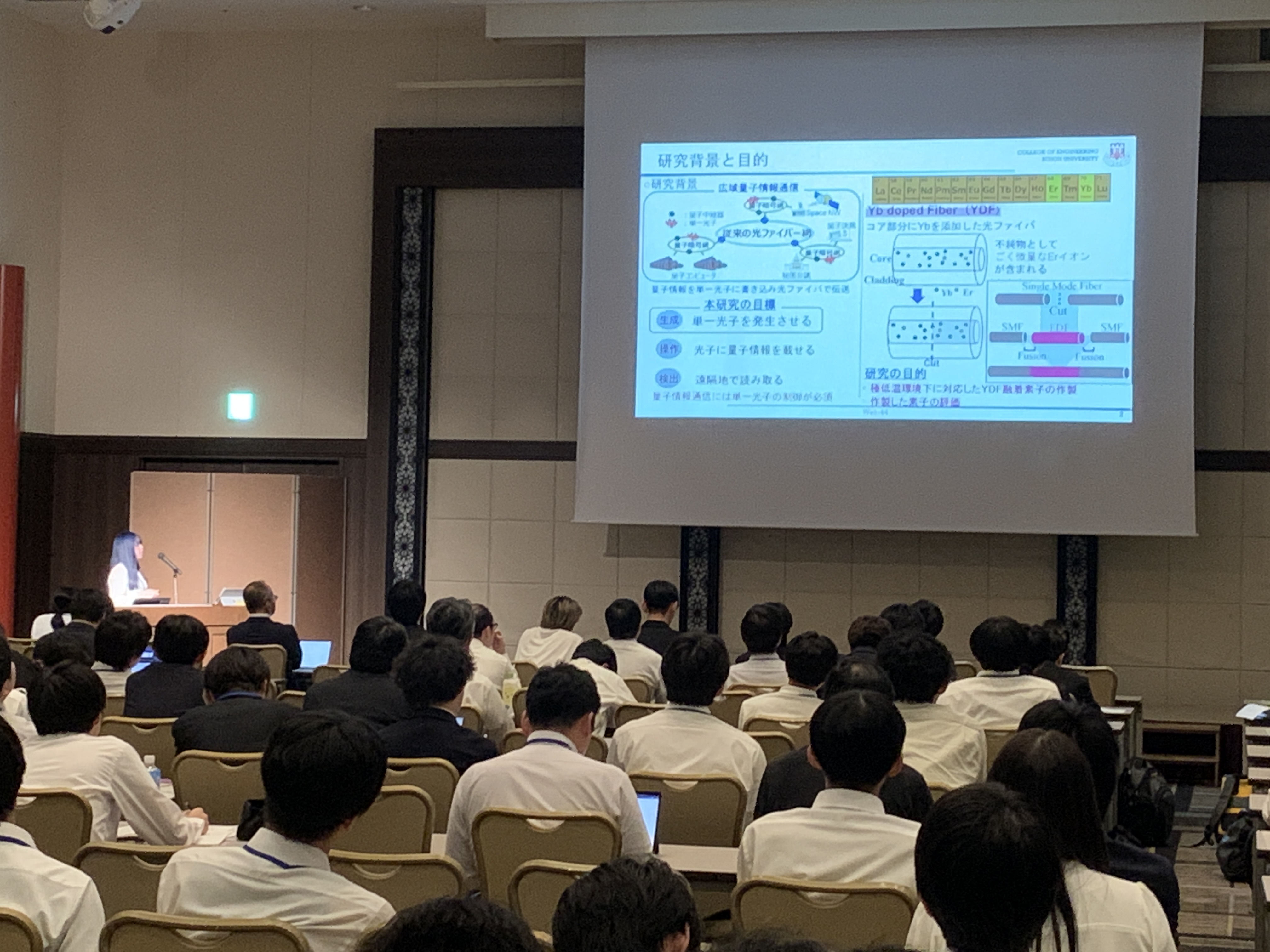 理工学研究科(量子理工学、電気工学各専攻)の講義「量子科学フロンティアI」において、「通信波長帯光量子メモリ」というタイトルで講義を行いました。工学部での取り組みを理工学部の皆さんにも知ってもらう大変良い機会となりました。シラバスはこちら。