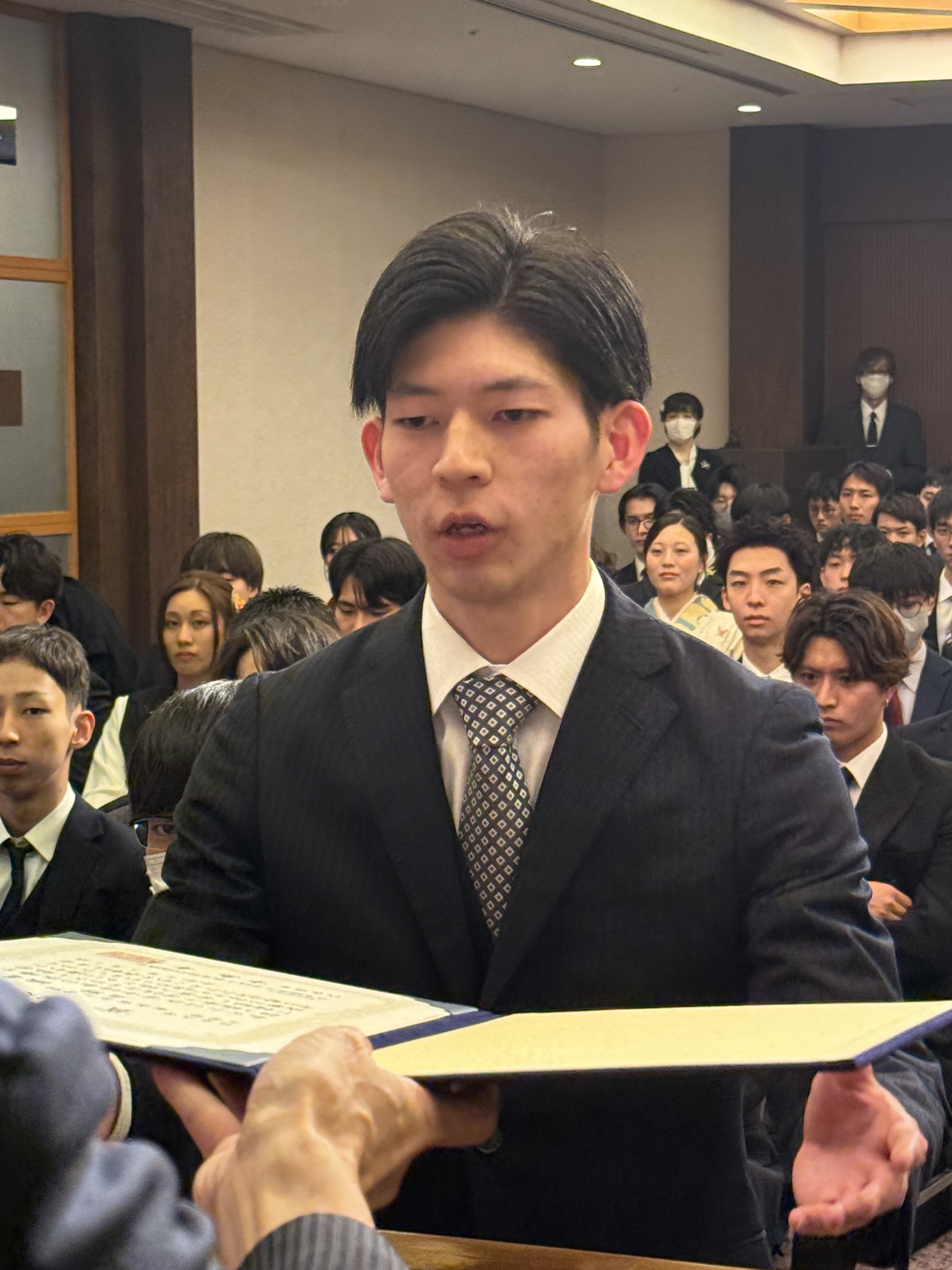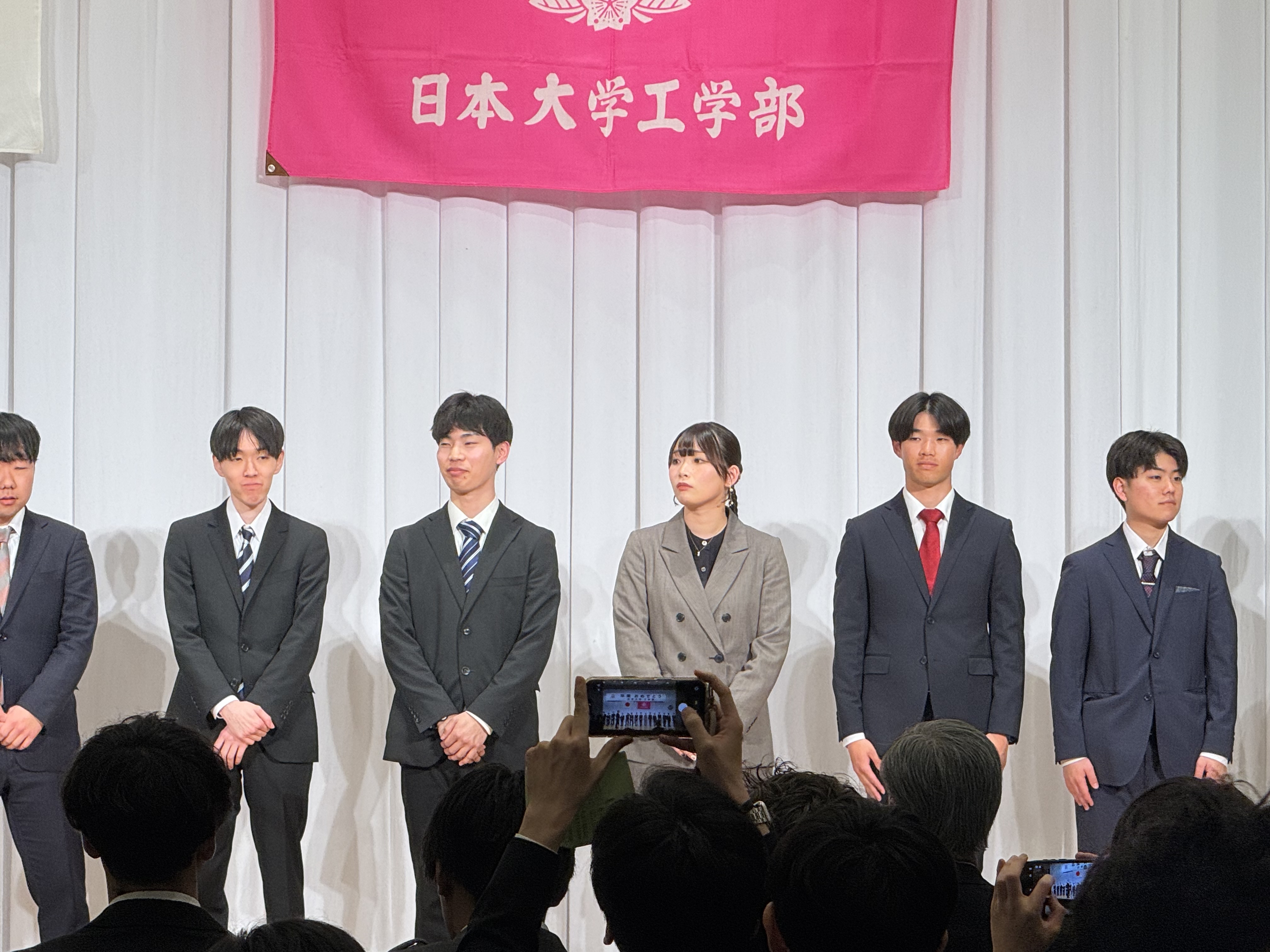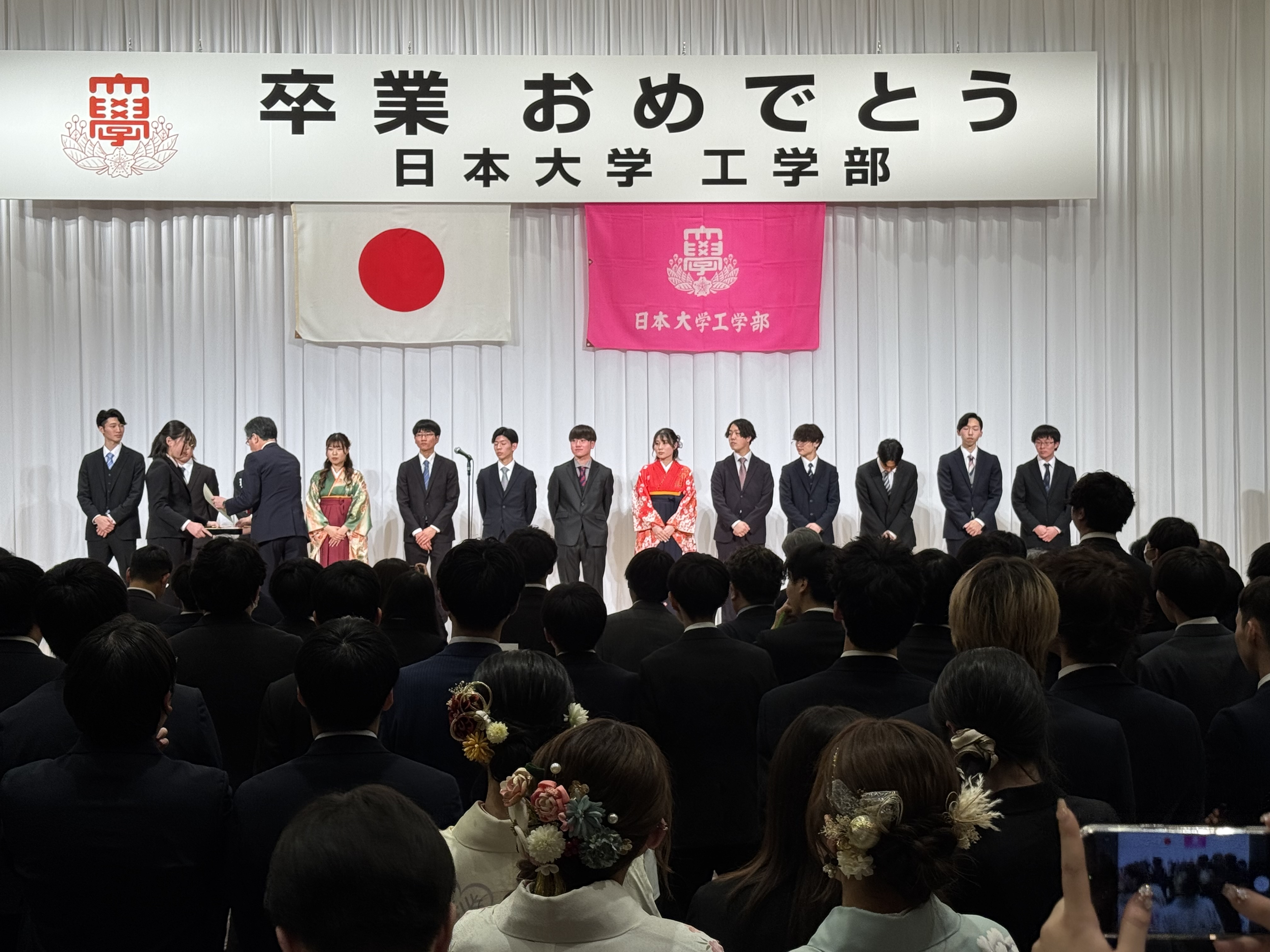 日本大学優等賞、各種学会賞を学生が受賞しました! 2025年度学位授与式において、本研究室の学生が様々な賞をいただきました! 日本大学優等賞:石野颯星、大桃祐斗、佐久間来斗 日本大学工学部長賞(学術部門):濱崎妙子 応用物理学会Poster Award:濱崎妙子 電気学会東北支部優秀学生賞:大桃祐斗 臨床工学技士教育施設協議会代表理事賞:石野颯星 みなさんの頑張りが評価されて、嬉しい限りです。これを励みにこれからも頑張ってください!皆さんおめでとうございました!!